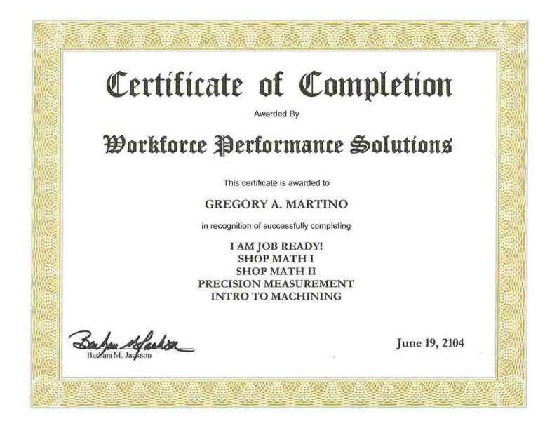 Shop Math I Certificate from Workforce Performance Solutions and Expert Technical