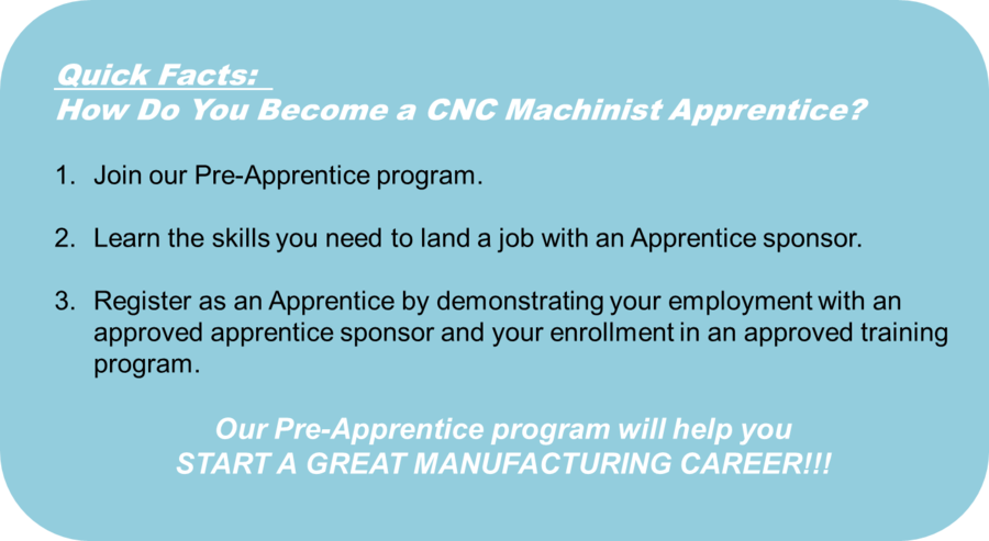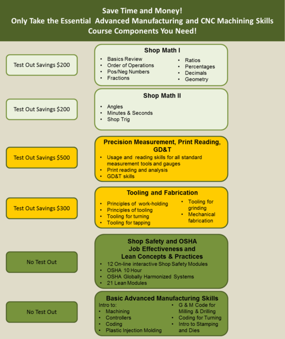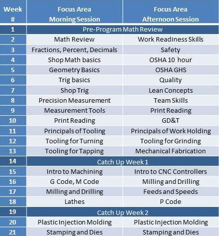 - Shop Math Intensive Intro to Manufacturing and CNC Machining day program lasts 18 weeks. During 2014 it will be offered in January, May, July, and October.